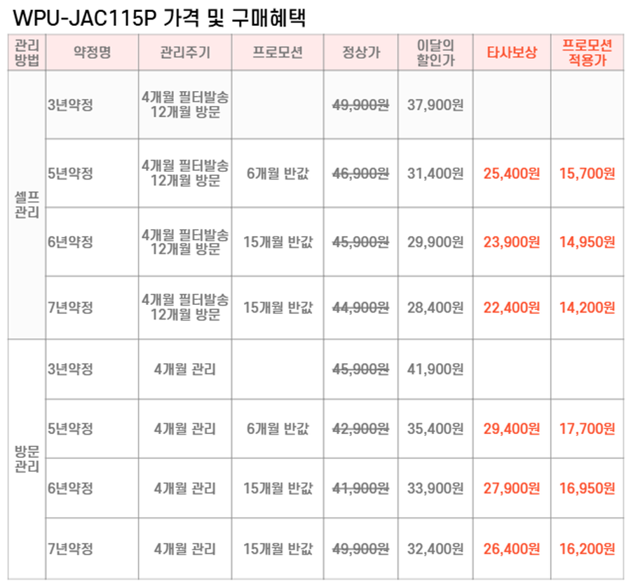 최저 렌탈가 22,400 (렌탈가) 제휴카드 할인가 (렌탈가)