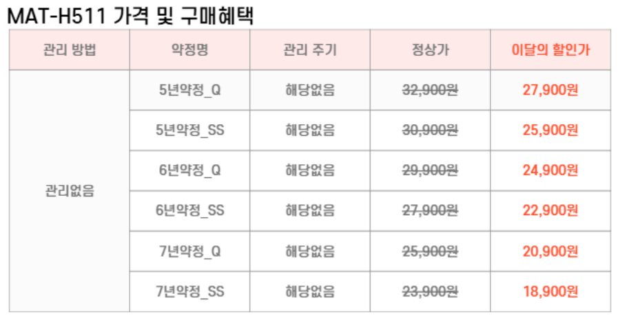 최저 렌탈가 18,900 (렌탈가) 제휴카드 할인가 (렌탈가)