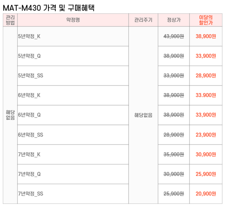 최저 렌탈가 20,900 (렌탈가) 제휴카드 할인가 (렌탈가)