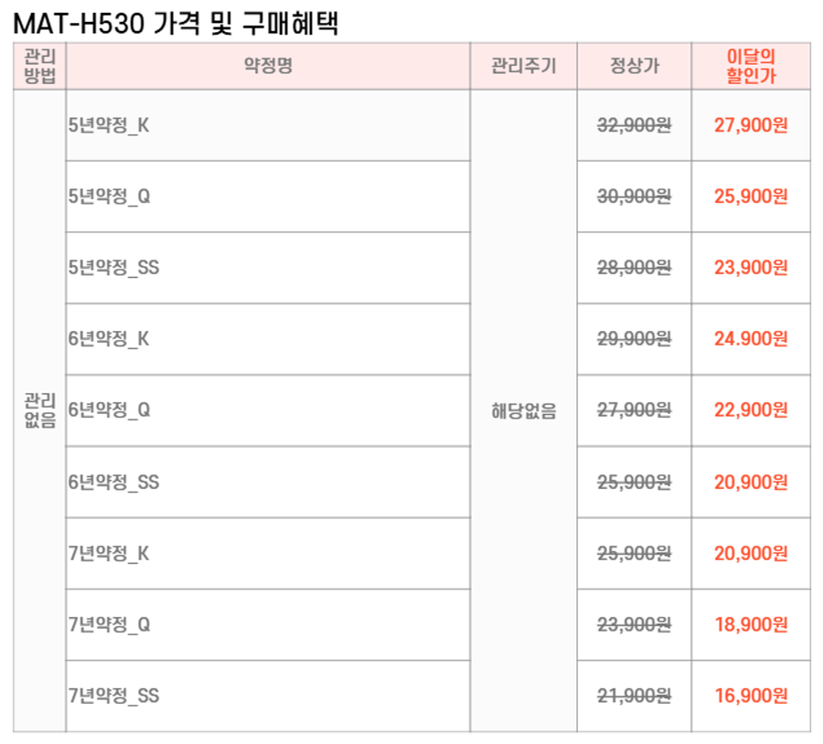 MAT-SH530,MAT-QH530,MAT-KH530 SK매직 [SK매직] 패브릭 헤드보드 프레임(슈퍼싱글,퀸,킹) 제품분류 프레임 A/S기간 렌탈기간내 최저 렌탈가 월 16,900 (렌탈가) 제휴카드 할인가 월 (렌탈가) 5년 6년 7년 슈퍼싱글 퀸 킹 할인 제휴카드 보기 렌탈신청 장바구니
