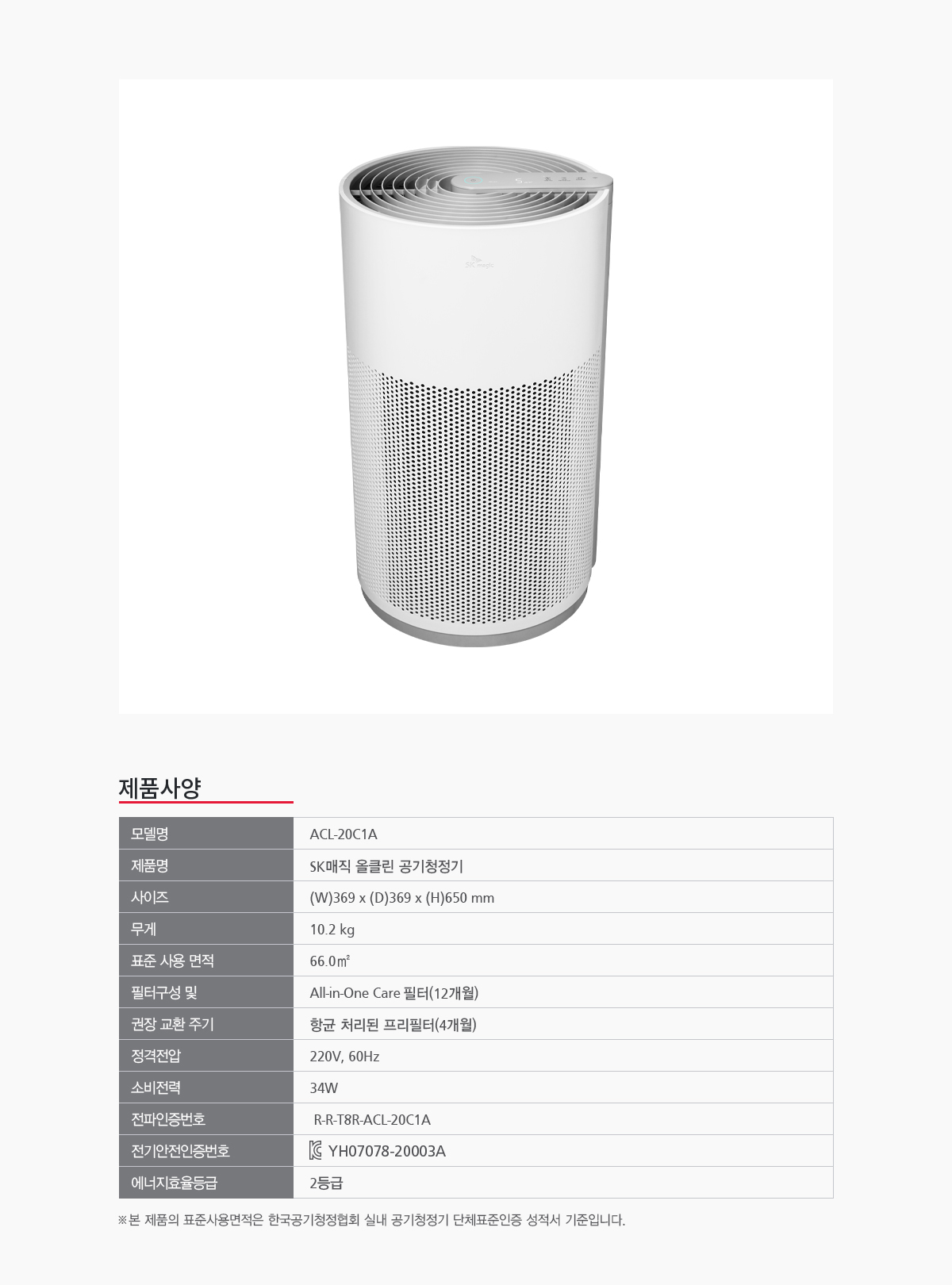 ACL-20C1A SK매직 [SK매직] 올클린 공기청정기 20평형 제품분류 11~20평 공기청정기 A/S기간 렌탈기간내 최저 렌탈가 월 18,900 (렌탈가) 제휴카드 할인가 월 (렌탈가) 3년 4년 5년 6년 7년 셀프관리 방문관리/4개월 화이트 할인 제휴카드 보기 렌탈신청 장바구니