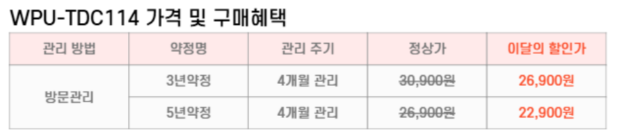 WPU-TDC114 SK매직 [SK매직] 뉴나노 플러스 정수기 제품분류 냉/온정수기 정수방식 탱크형 기능 냉온전용 A/S기간 렌탈기간내 최저 렌탈가 월 22,900 (렌탈가) 제휴카드 할인가 월 (렌탈가) 3년 5년 방문관리/4개월 내추럴화이트 할인 제휴카드 보기 렌탈신청 장바구니