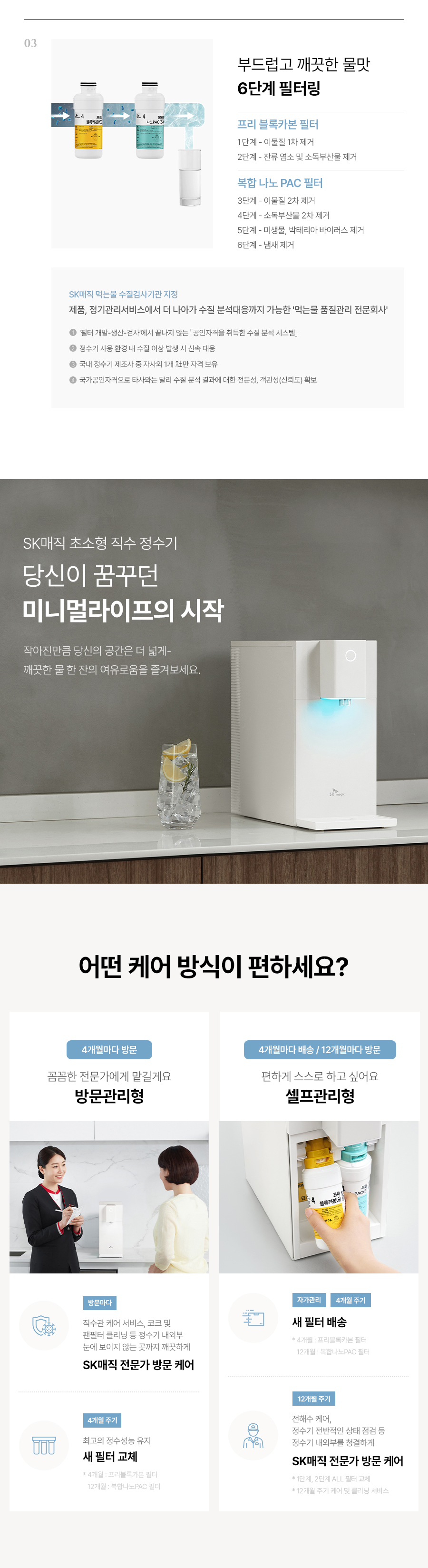 WPU-JCC104S SK매직 [SK매직] 초소형 직수 정수기 제품분류 냉정수기 정수방식 직수형 기능 냉수전용 A/S기간 렌탈기간내 최저 렌탈가 월 25,900 (렌탈가) 제휴카드 할인가 월 (렌탈가) 3년 5년 6년 7년 셀프관리 방문관리/4개월 네추럴화이트 SK반값할인 할인 제휴카드 보기 렌탈신청 장바구니
