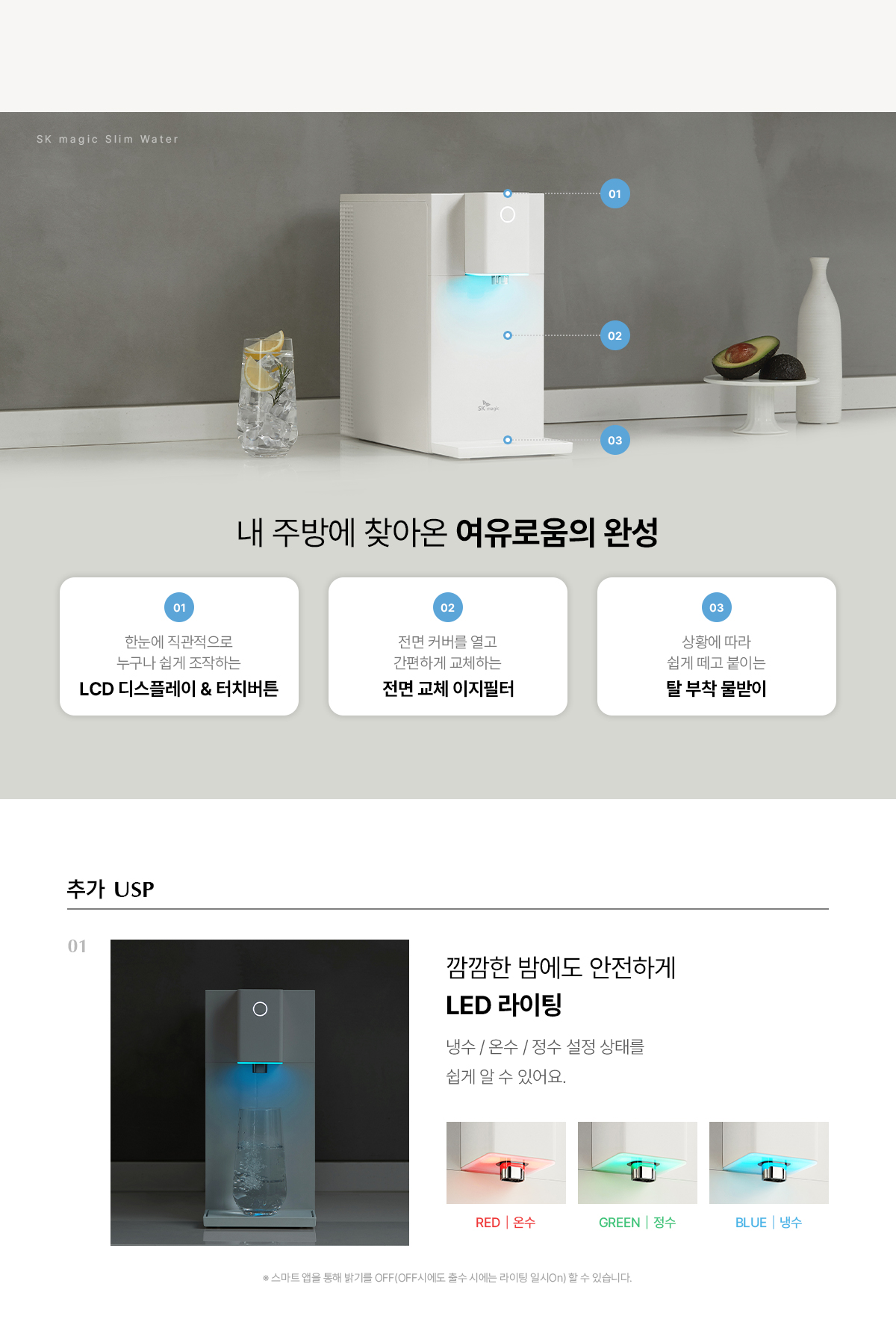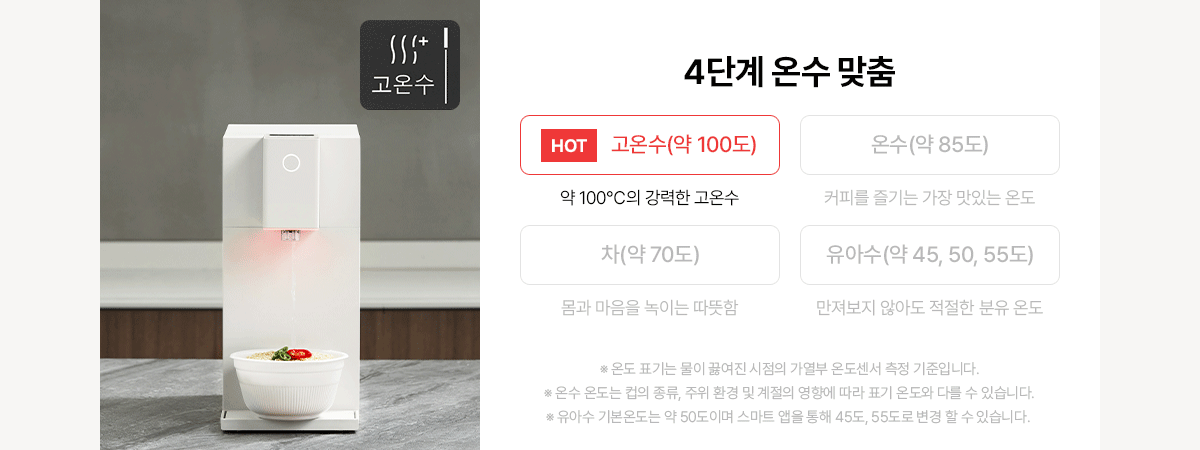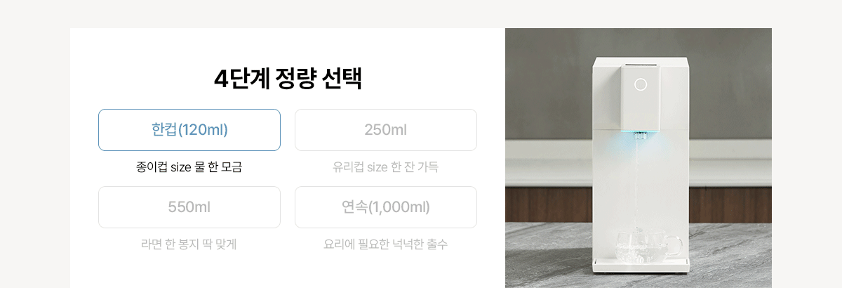 이전 엘지에 경우 , 자동 드레인 기능이 없었는데 지금은 시간에 맞춰서 남은 물들은 모두 드레인 되고 깨끗하게 관리한다 새것이라이라서 그런가 애전 애들은 실버 색이라서 별로였는데 화이트 가장 이쁨 100도 나오는것도 아주 편하다 라면 물 안 데워도 되고