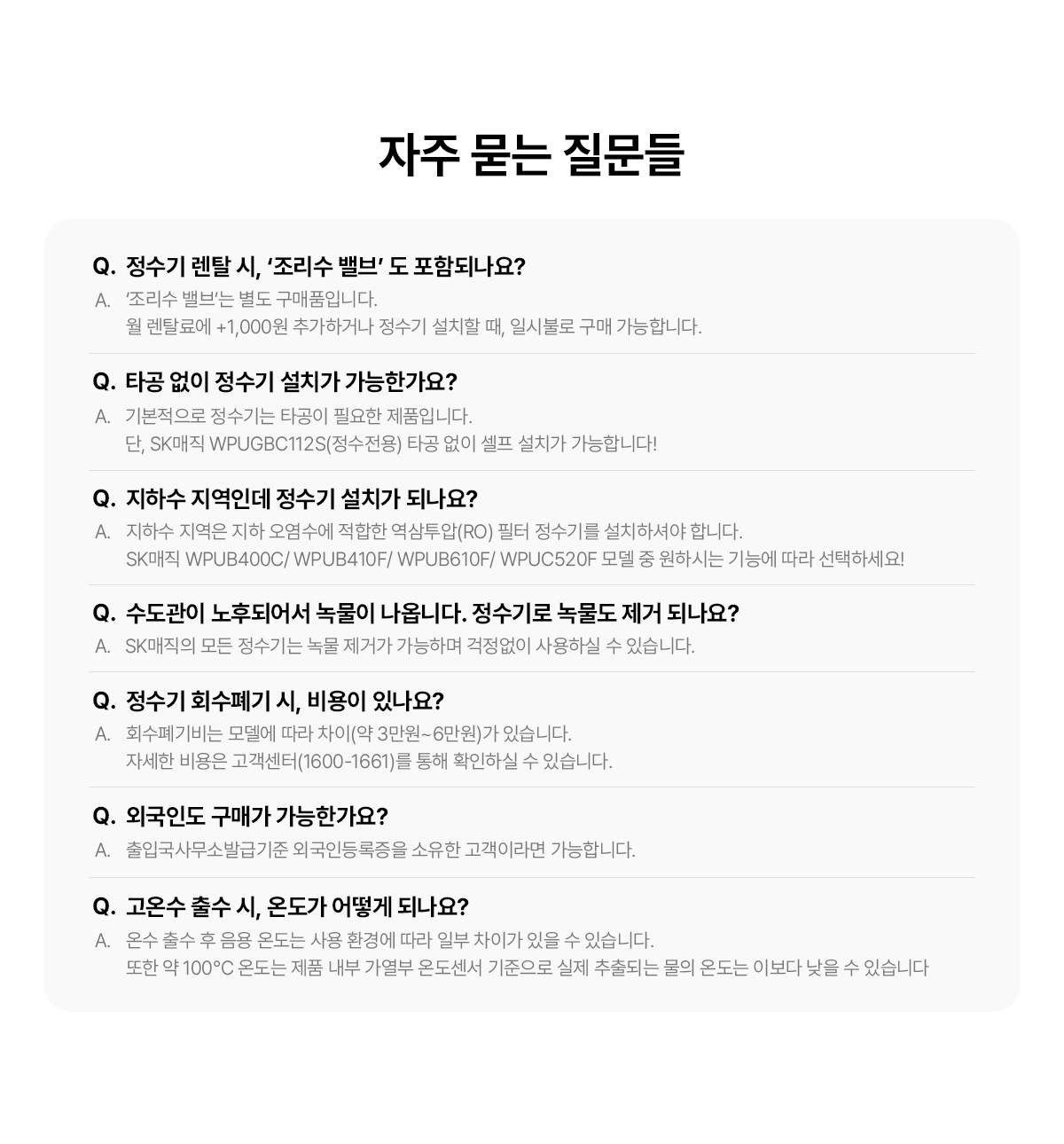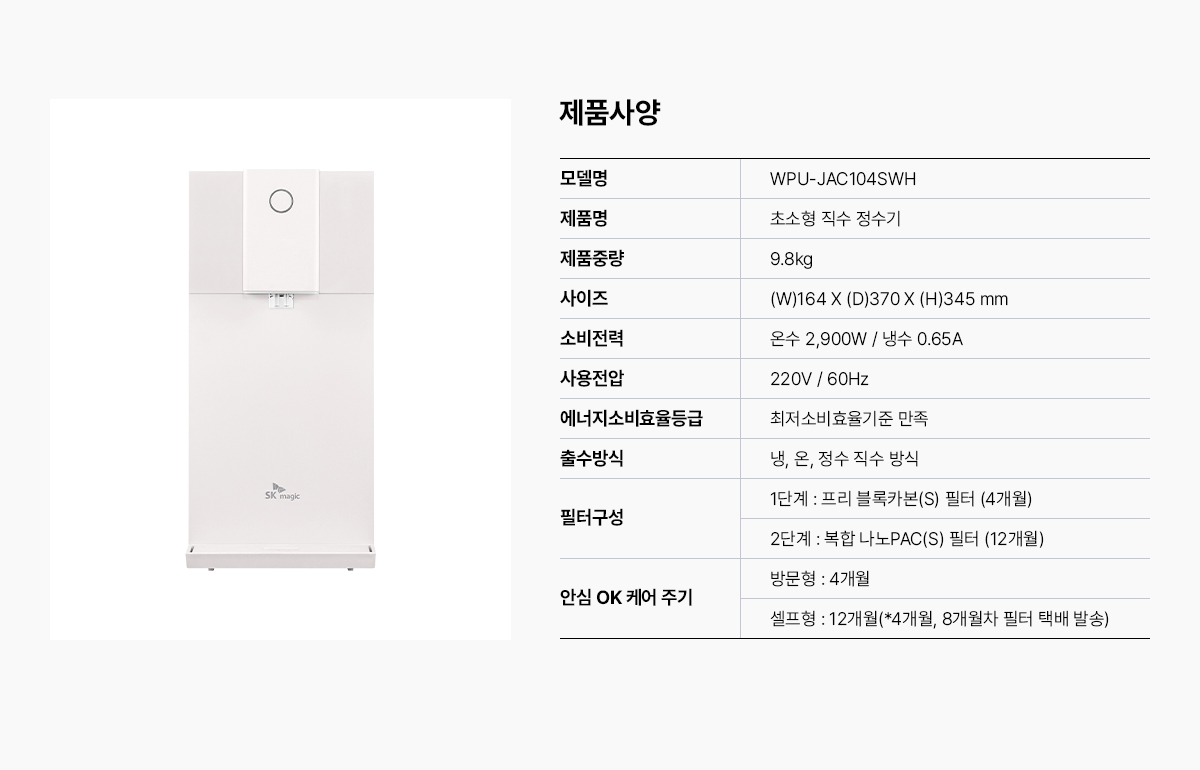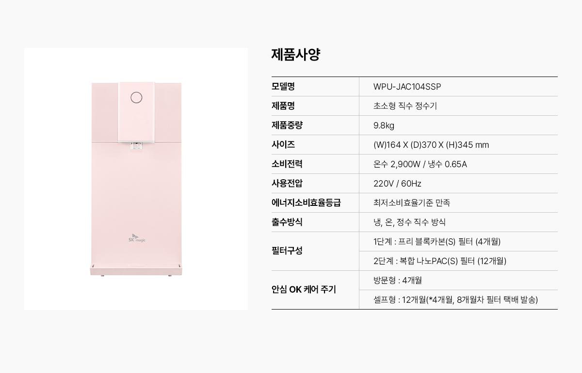 여러 업체 알아 보았는데 sk매직 세계가 조건이 가장 좋았고 더군다나 상담해 주신분이 넘넘 친절하셨어요