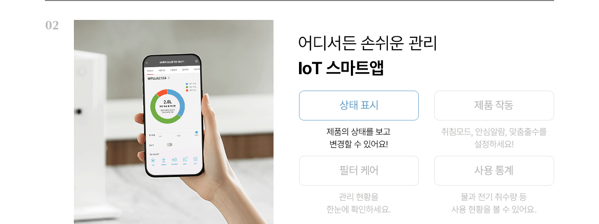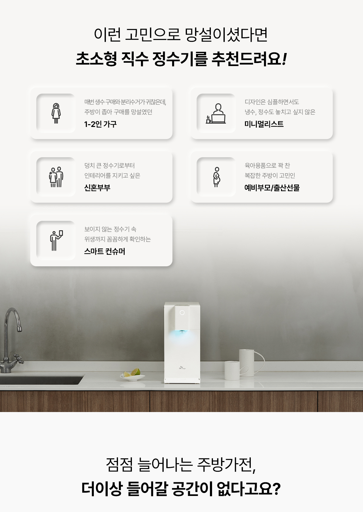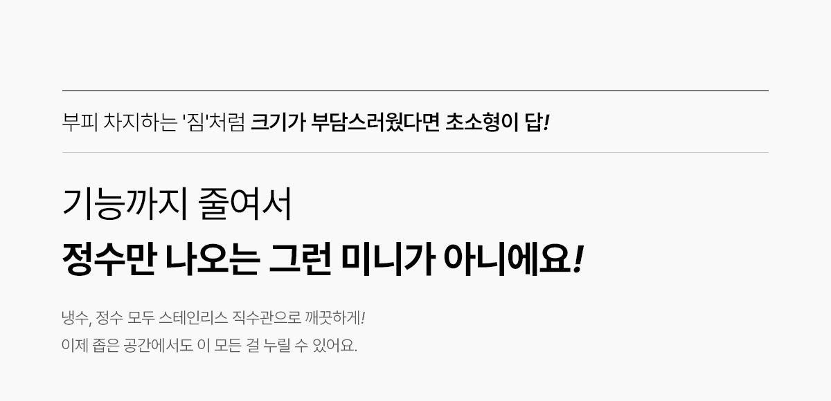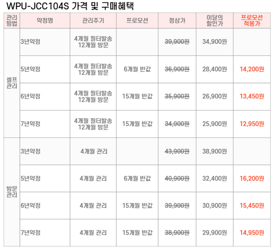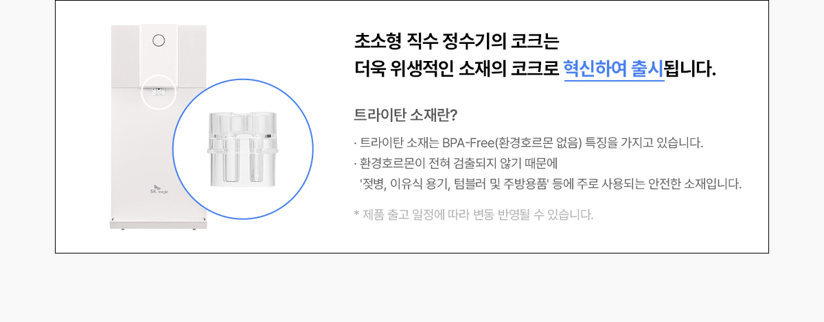 WPU-JCC104S SK매직 [SK매직] 초소형 직수 정수기 제품분류 냉정수기 정수방식 직수형 기능 냉수전용 A/S기간 렌탈기간내 최저 렌탈가 월 25,900 (렌탈가) 제휴카드 할인가 월 (렌탈가) 3년 5년 6년 7년 셀프관리 방문관리/4개월 네추럴화이트 SK반값할인 할인 제휴카드 보기 렌탈신청 장바구니