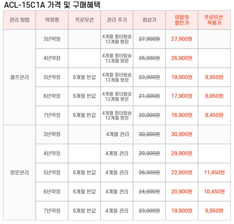 ACL-15C1A SK매직 [SK매직] 올클린 공기청정기 Green 242 15평형 제품분류 11~20평 A/S기간 렌탈기간내 최저 렌탈가 월 16,900 (렌탈가) 제휴카드 할인가 월 (렌탈가) 3년 4년 5년 6년 7년 셀프관리 방문관리/4개월 화이트 SK반값할인 할인 제휴카드 보기 렌탈신청 장바구니