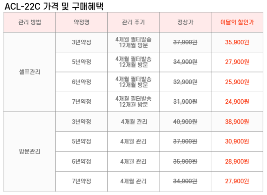 ACL-22C SK매직 [SK매직] 올클린 디아트 공기청정기 22평형 제품분류 21~30평 A/S기간 렌탈기간내 최저 렌탈가 월 24,900 (렌탈가) 제휴카드 할인가 월 (렌탈가) 3년 5년 6년 7년 셀프관리 방문관리/4개월 오트밀베이지 다크그린 할인 제휴카드 보기 렌탈신청 장바구니
