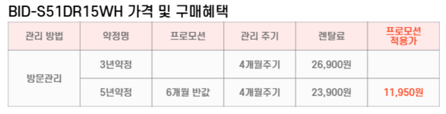 1877-2237 빠르고 간편한 렌탈 상담신청 개인정보 수집/이용 내용보기 동의 미동의 ※ 개인정보수집이용 동의 1. 개인정보의 수집 및 이용목적 : 원활한 렌탈 상담 및 주문을 위한 참조자료로 아래와 같은 항목의 개인정보를 수집하고 있습니다 2. 수집하려는 개인정보 항목 : 필수 수집항목 : 이름, 연락처 3. 개인정보의 보유 및 이용기간 : 수집된 정보는 이용자의 정보 삭제 요구 시까지 보관, 활용하며 수집 및 이용 목적이 달성된 후 해당 정보를 지체 없이 파기합니다. 단순 상담고객 3개월 / 계약 고객 12개월 4. 개인정보 취급 담당자 : 이름 : 조현진연락처 : 1877-2237 5. 개인정보 수집 동의거부 사항 : 이용자의 개인정보는 원활한 상담을 위해 수집하고 있으며, 동의하지 않을 경우 상담 및 주문이 제한됩니다. [닫기]