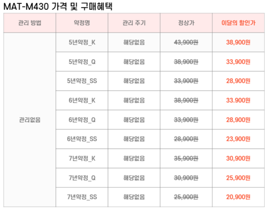 최저 렌탈가 20,900 (렌탈가) 제휴카드 할인가 (렌탈가)