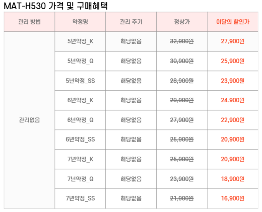 최저 렌탈가 16,900 (렌탈가) 제휴카드 할인가 (렌탈가)