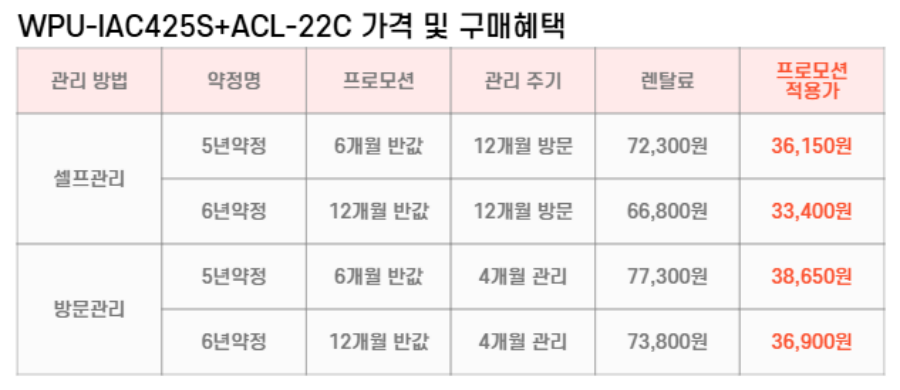 WPU-IAC425S+ACL-22C SK매직 [SK매직] 원코크 플러스 얼음물 정수기 + 올클린 디아트 공기청정기 22평형 제품분류 정수기패키지 공기청정기패키지 A/S기간 렌탈기간내 최저 렌탈가 월 68,800 (렌탈가) 제휴카드 할인가 월 (렌탈가) 5년 6년 자가관리 방문관리/4개월 네추럴화이트+오트밀베이지 네추럴화이트+다크그린 뉴트럴실버+오트밀베이지 뉴트럴실버+다크그린 SK반값할인 할인 제휴카드 보기 렌탈신청 장바구니